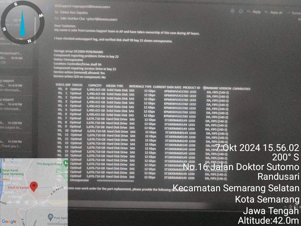 Untuk disk yang bermasalah saat ini sedang dalam pengisian alamat untuk pengiriman part pengganti